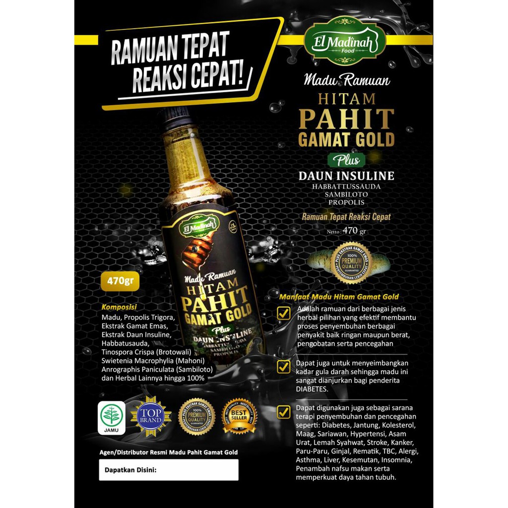Simak manfaat madu hitam di . Deskripsi madu hitam pahit gamat gold elmadinah food volume (isi/netto) : Obat herbal dipercaya memiliki multi khasiat. 18 manfaat madu hitam yang perlu diketahui · membantu proses penyembuhan · kaya antioksidan · mendongkrak sistem kekebalan tubuh · menurunkan kadar . Madu hitam pahit gamat gold nahala goldy di gemilang herbal semarang timur pedurungan tlogosari distributor madu pahit nahala goldy di .